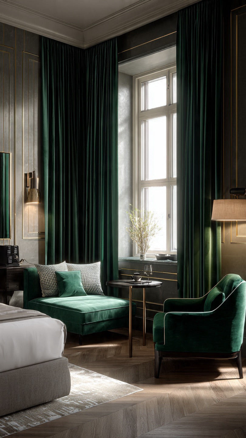 When sourcing window treatments for high-end hotels, luxury resorts, or boutique accommodations, quality and compliance are non-negotiable. Our forest green velvet drapes provide the perfect balance: the velvet luxury your guests expect, and the commercial durability and fire rating your operations require.