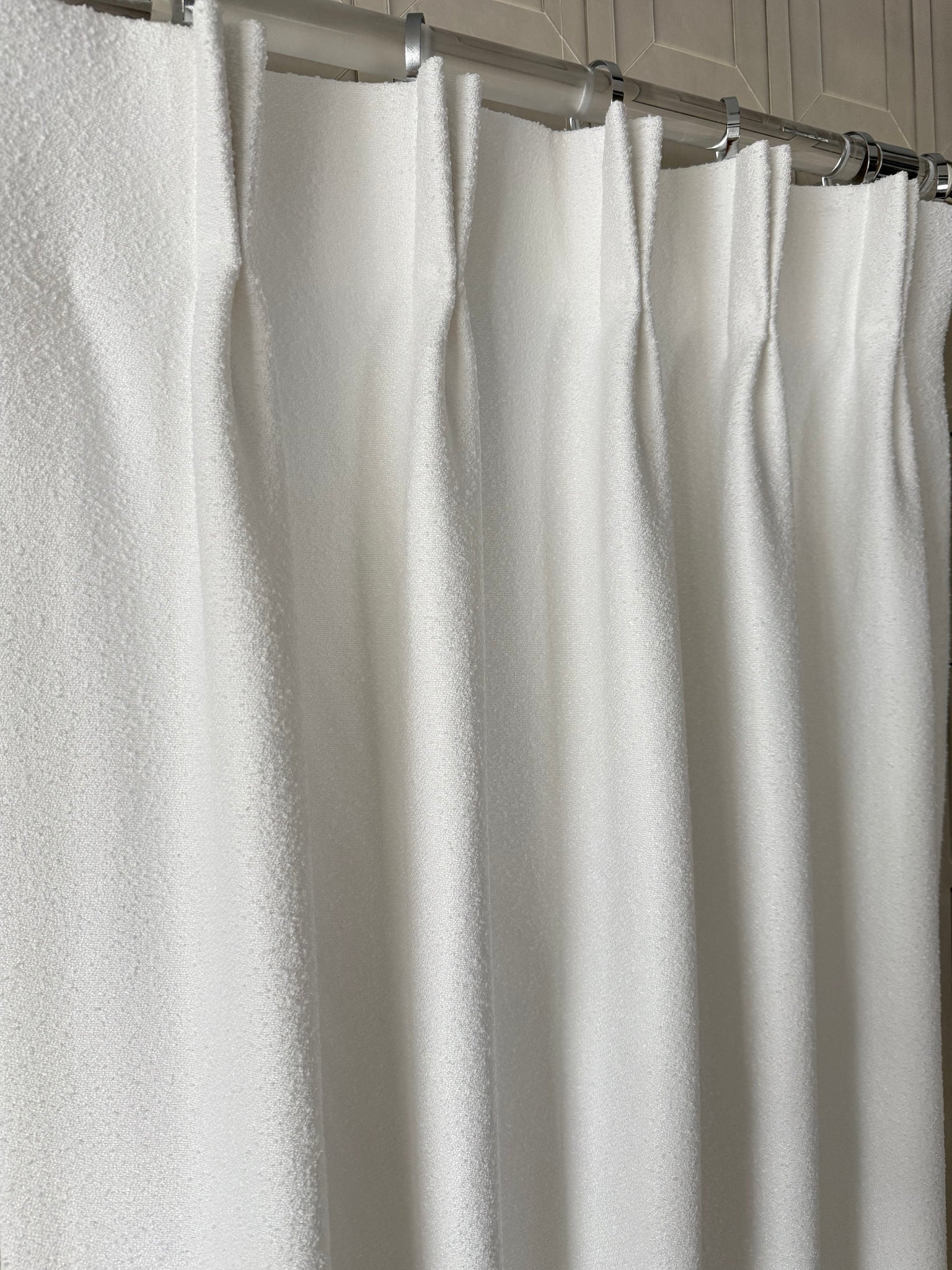 Introduce warmth, softness, and modern sophistication to your home with our exclusive Bouclé Custom Drapery Collection. Bouclé (French for "curled" or "looped") is the ultimate texture trend, transforming standard window coverings into plush, statement-making textiles.
