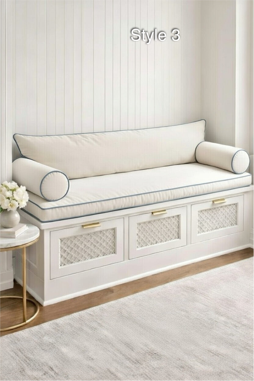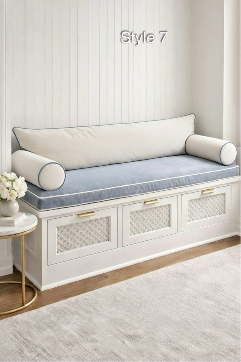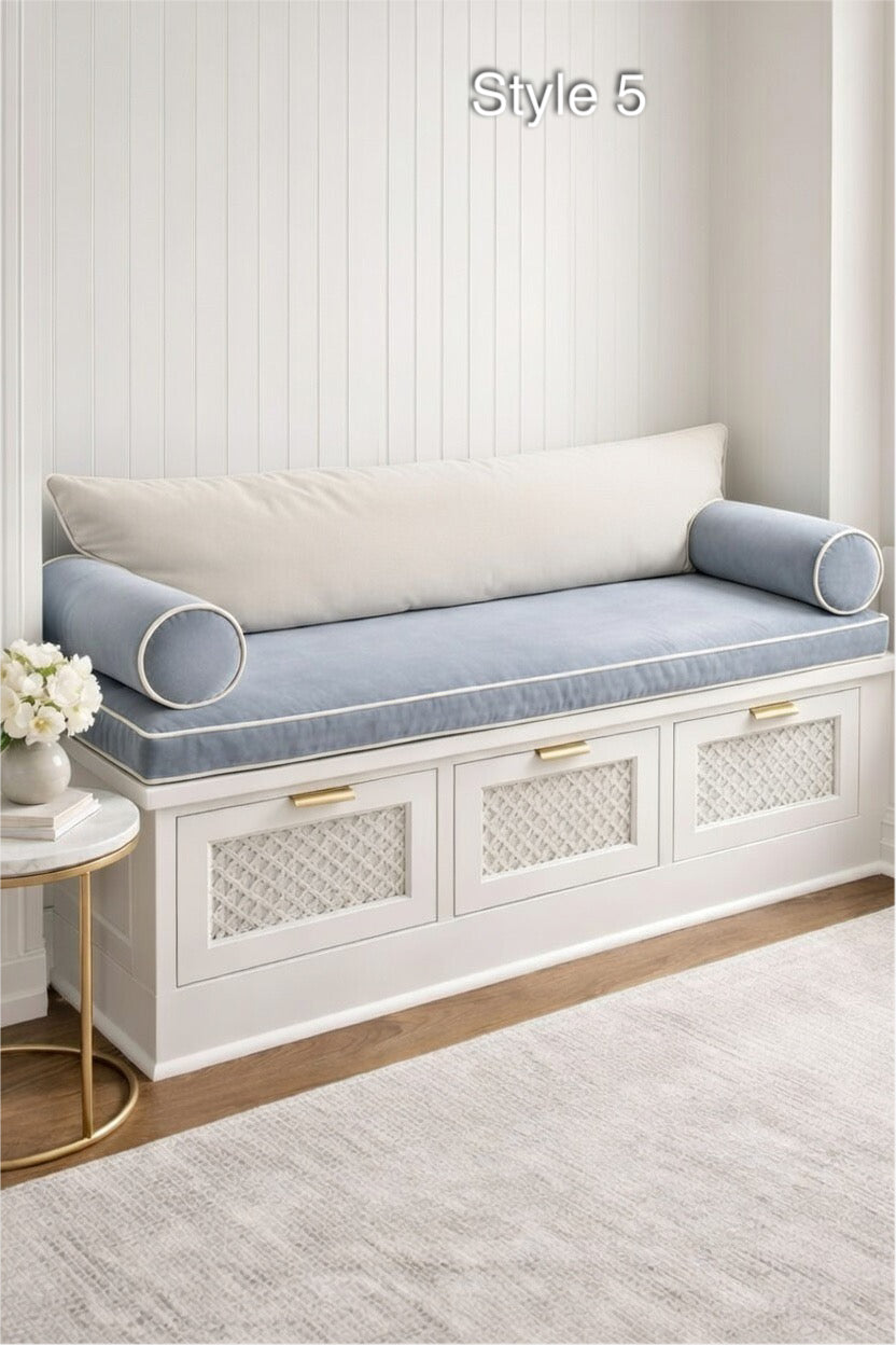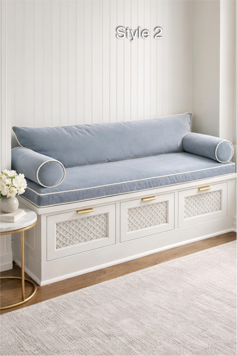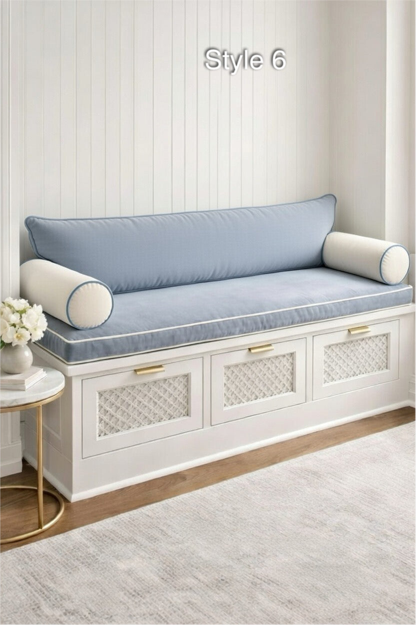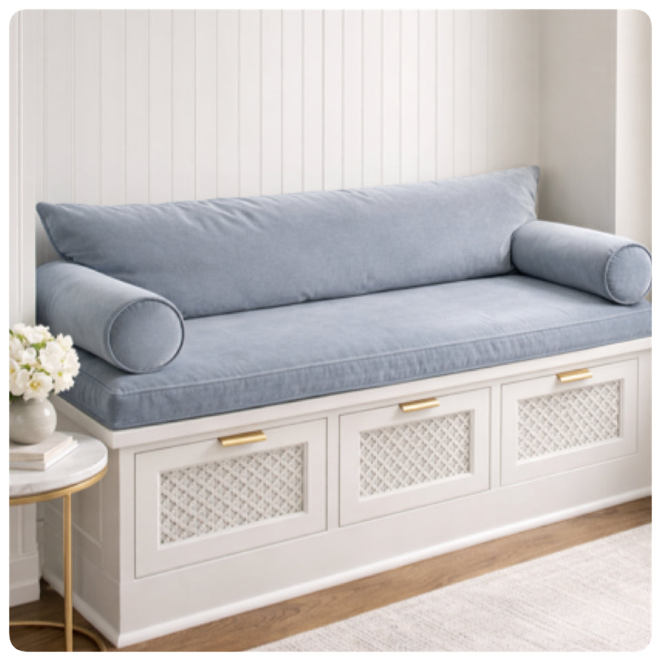 Transform your entryway, window nook, or mudroom with our Luxury Custom Bench Cushion Set. Handcrafted in a stunning Light French Blue, this set is designed for those who refuse to compromise on style or comfort.