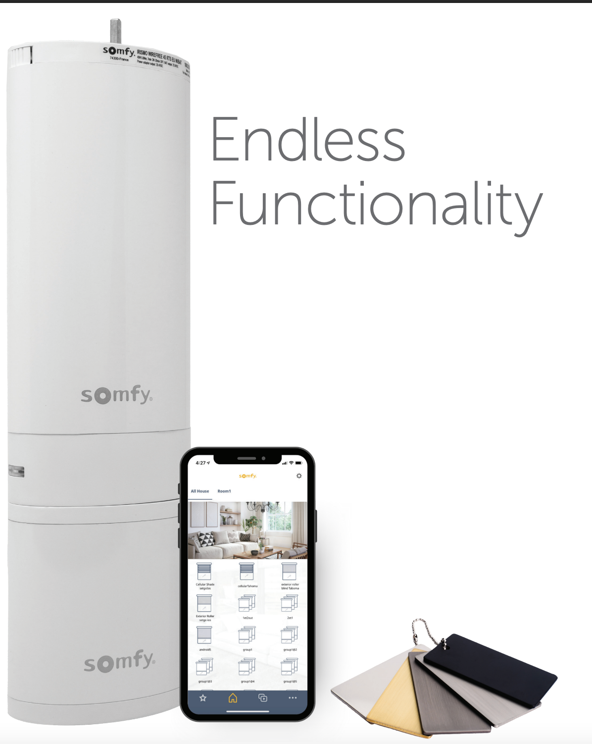 The Somfy powered drapery hardware has been designed and engineered for installation and operation perfection. Designed to operate with Somfy®’s industry-leading Irismo motors, this collection impeccable aesthetics, allowing for uninterrupted ripplefold waves and flush-to-track pinch pleats, all while using the same motor.